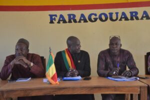 Abritant cette rencontre dans sa commune, le Maire de Faragouaran Monsieur Chaka SAMAKÉ a remercié l’ONG GAMS-Mali à travers elle, son Président Monsieur Sidi KONÉ et toute son équipe pour cette initiative d’approche qui permettra d’améliorer le cadre de vie des communautés tout en venant en appui à leurs plans de développement économique, social et culturel (PDESC) respectifs. Il a assuré l’ONG GAMS – Mali de faire bon usage des leçons apprises qui consolideront leurs expériences en matière de développement.